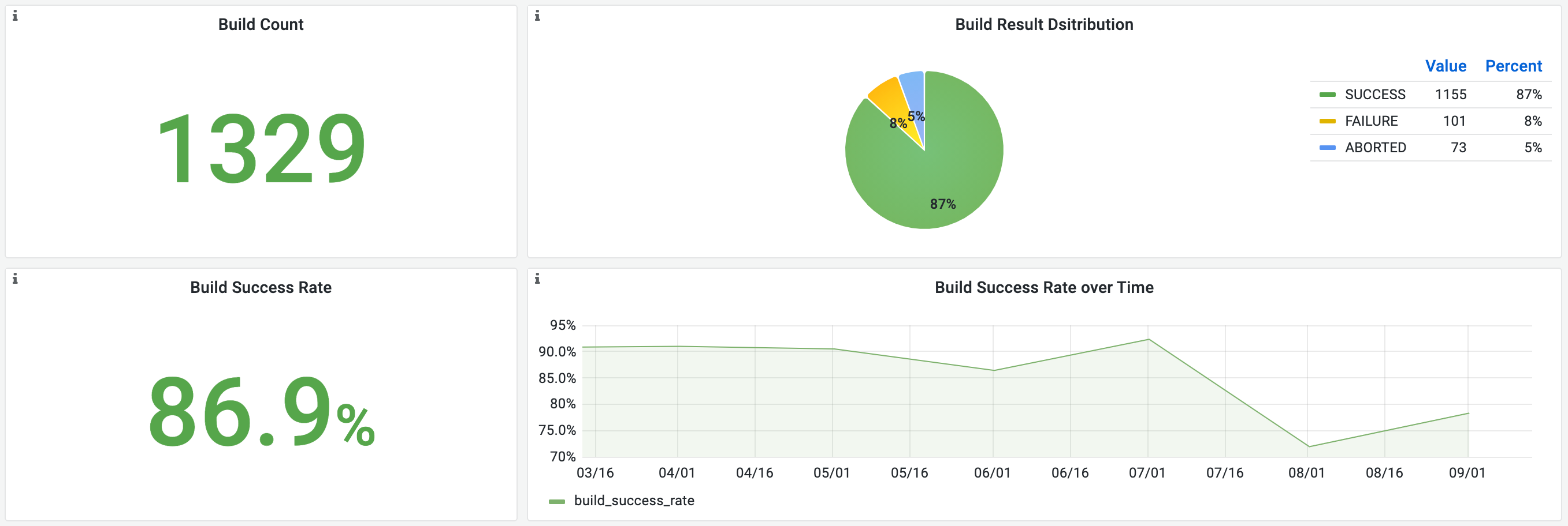 - 统计周期内构建总次数、构建成功次数、构建失败次数。